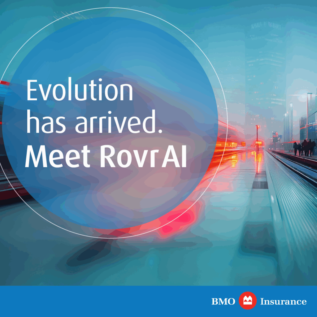 Rovr AI is an AI advisor support platform developed for BMO Insurance. I created the full brand identity and visual system, using AI as a creative support tool to shape the look and feel. The work expanded into a rollout including an animated explainer video, campaign deck, and social launch assets—designed with consistent typography, layouts, motion language, and brand rules.